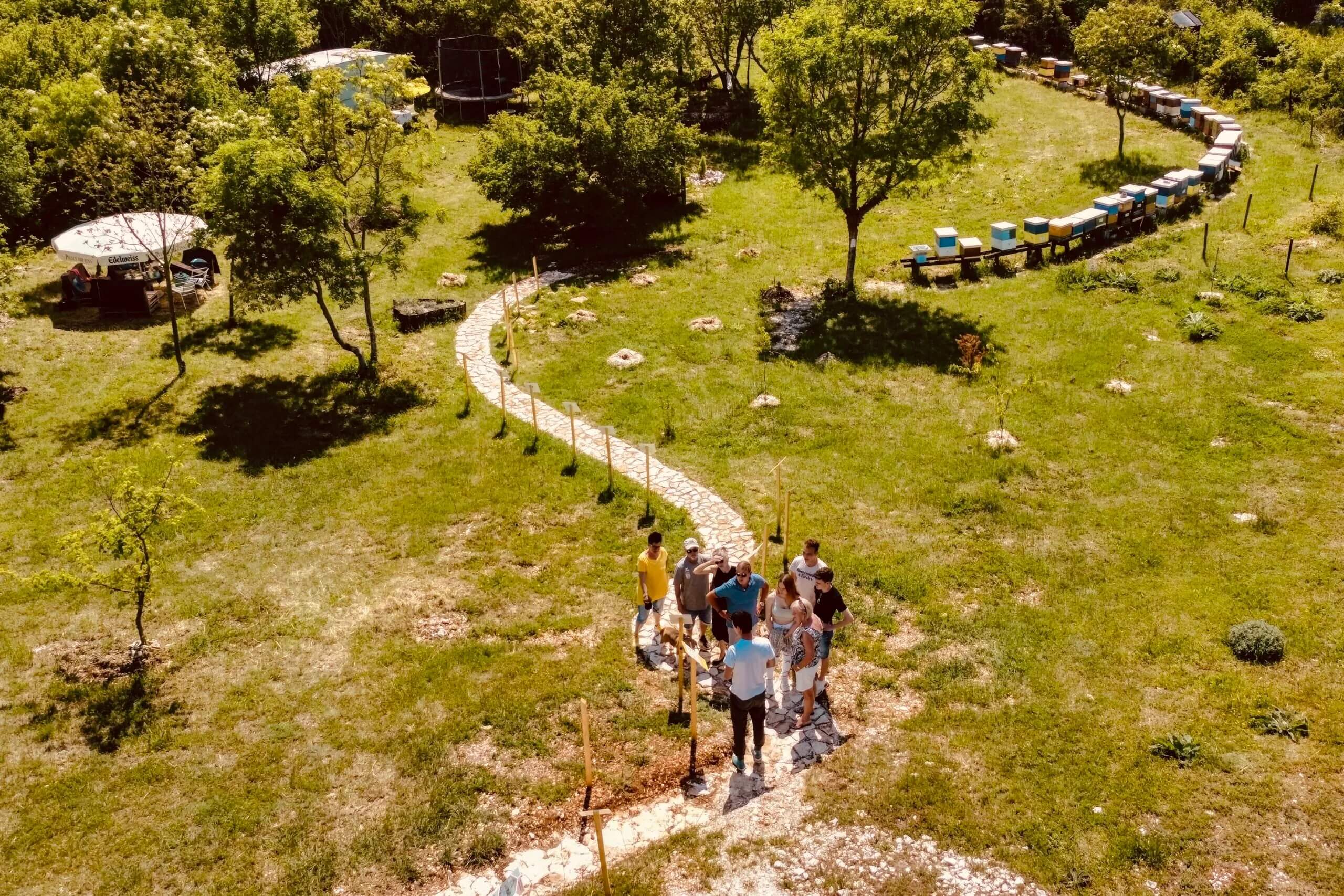 Unatoč izazovima pandemije, 2021. bila je prekretnica. Uz pomoć prijatelja i obitelji očistili smo 6.000 m² zemljišta i napravili prvi korak prema Parku pčela i imanju kakvo danas poznajete. Te godine povećali smo broj košnica na 87.